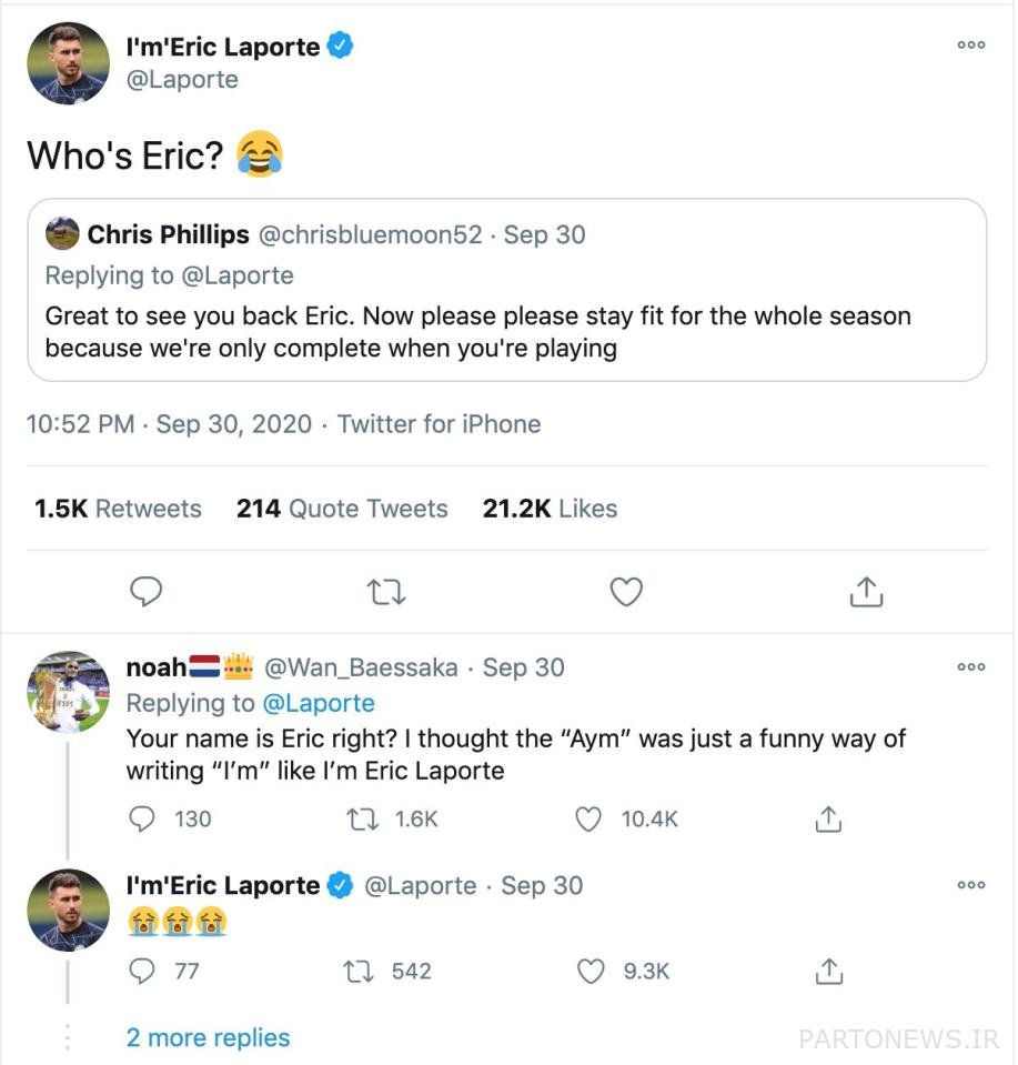 لاپورت نام خود را در شبکه های اجتماعی به “اریک” تغییر داد زیرا یکی از طرفداران فکر می کرد این نام او است.