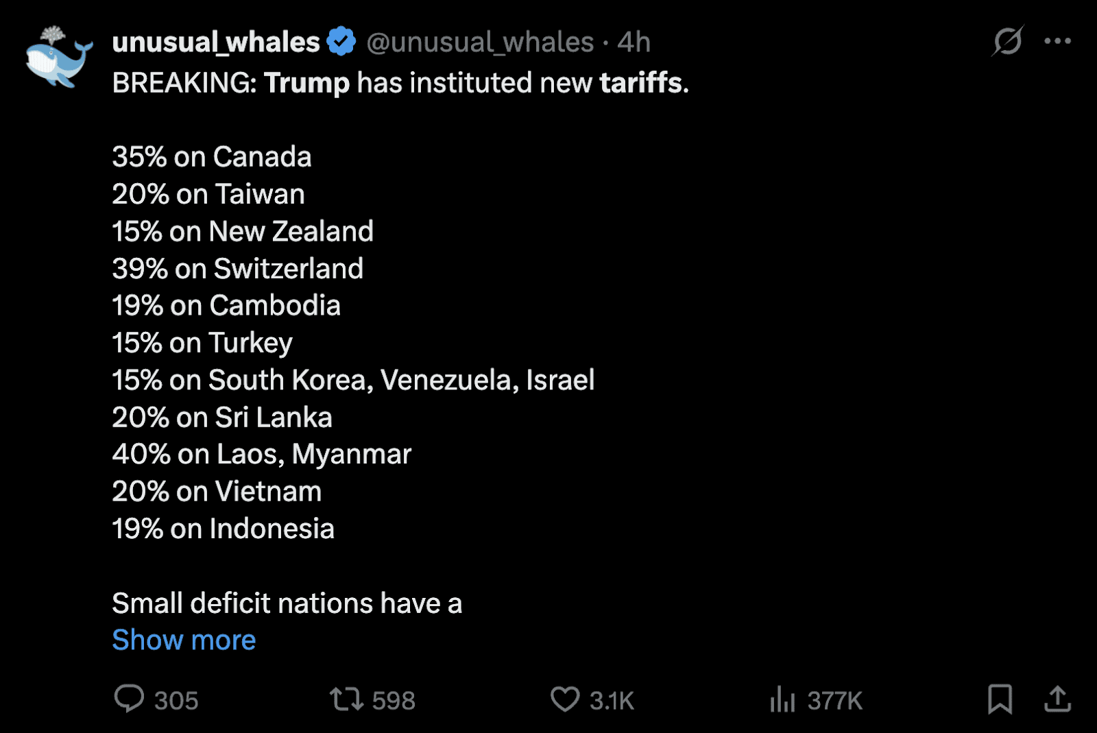 پس از پاسخ منفی بیت کوین به سری جدید تعرفه های رئیس جمهور ایالات متحده دونالد ترامپ علیه کانادا ، تایوان ، کره جنوبی ، ویتنام و تعداد انگشت شماری از کشورهای دیگر ، قیمت ETH به 3600 دلار فروخته شد.