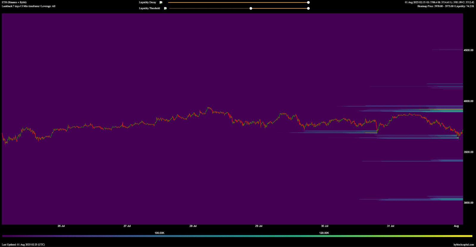 داده های خطای نقدینگی از Hyblock نشان می دهد که قیمت ETH در روز پنجشنبه با افزایش سطح انحلال اهرم طولانی به 3600 دلار ضربه می زند و شورت ها در معرض خطر نزدیک به 3،900 دلار هستند ، جایی که فروش در طول هفته شدیدترین بوده است.