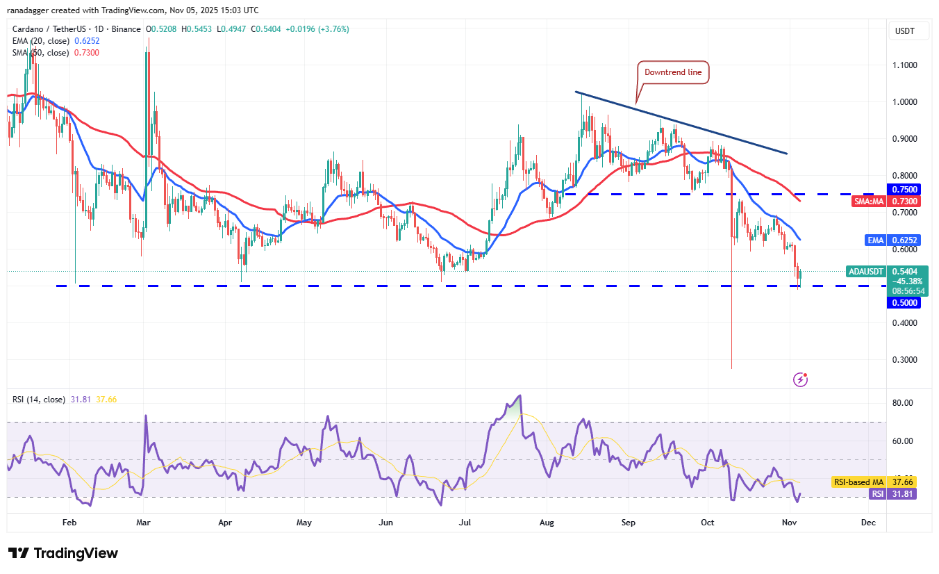 Cardano (ADA) به کاهش خود ادامه داد و به حمایت مستحکم در 0.50 دلار رسید، جایی که انتظار میرود خریداران دفاعی قوی داشته باشند.