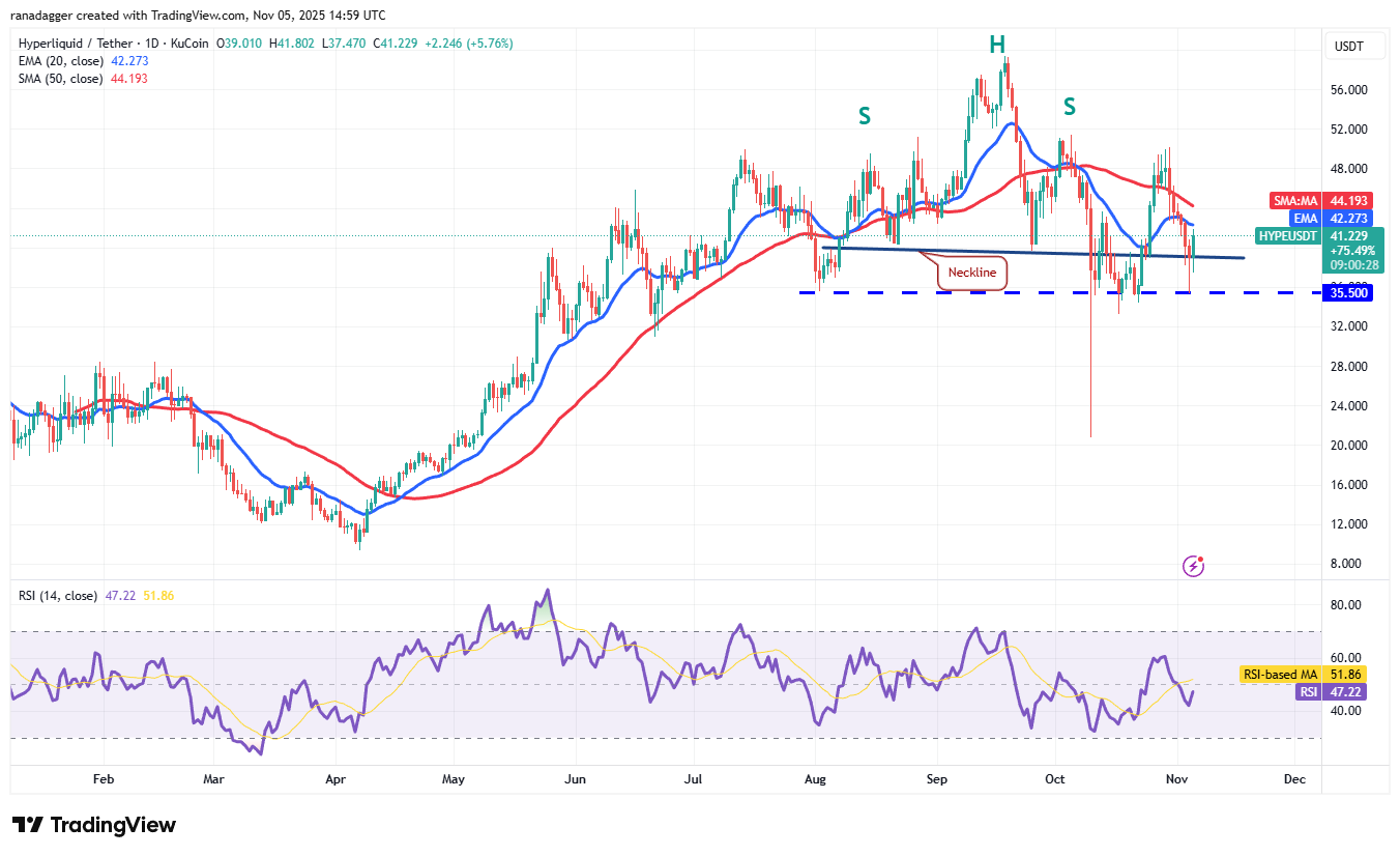 Hyperliquid (HYPE) روز سه شنبه به زیر خط گردن سقوط کرد اما در سطح حیاتی 35.50 دلار حمایت شد.