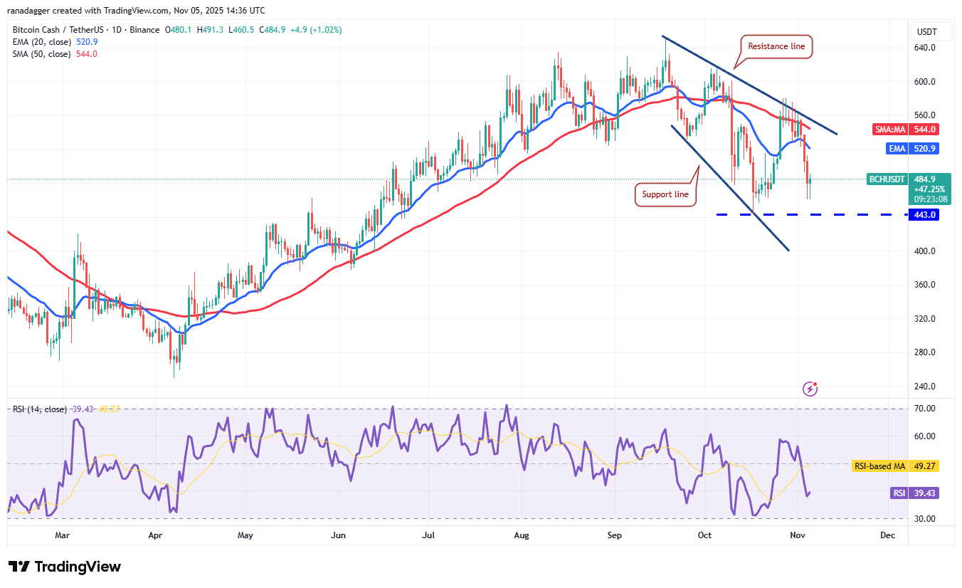 بیتکوین کش (BCH) در روز دوشنبه به زیر میانگین متحرک نمایی 20 روزه (520 دلار) سقوط کرد که نشان میدهد ممکن است قیمت برای چند روز دیگر در الگوی نزولی باقی بماند.