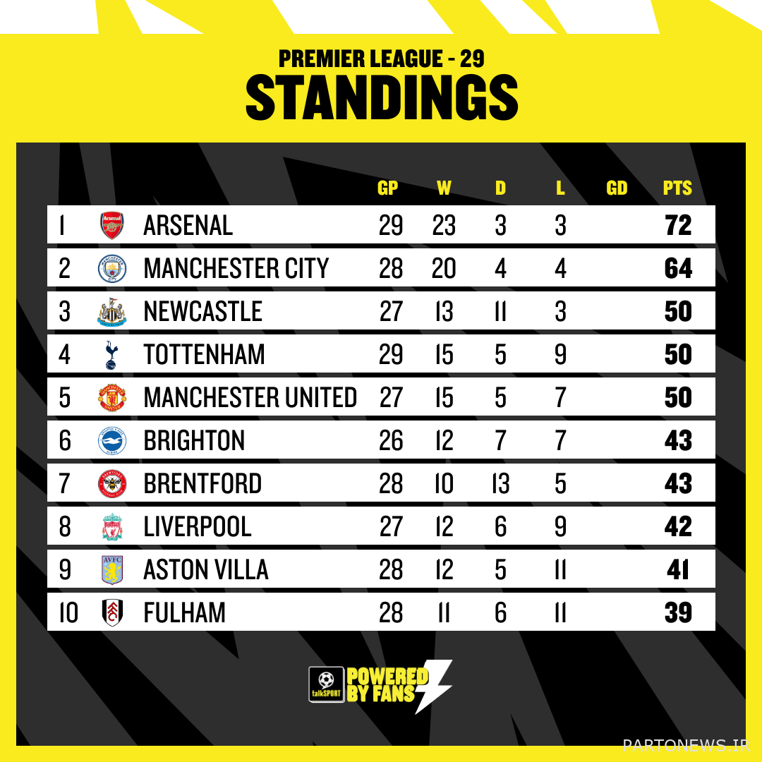 نتیجه برای اسپرز باعث می شود که آنها در جدول لیگ برتر با تفاضل گل جلوتر از منچستریونایتد در رده چهارم قرار بگیرند، اما شیاطین سرخ دو بازی در پیش دارند.