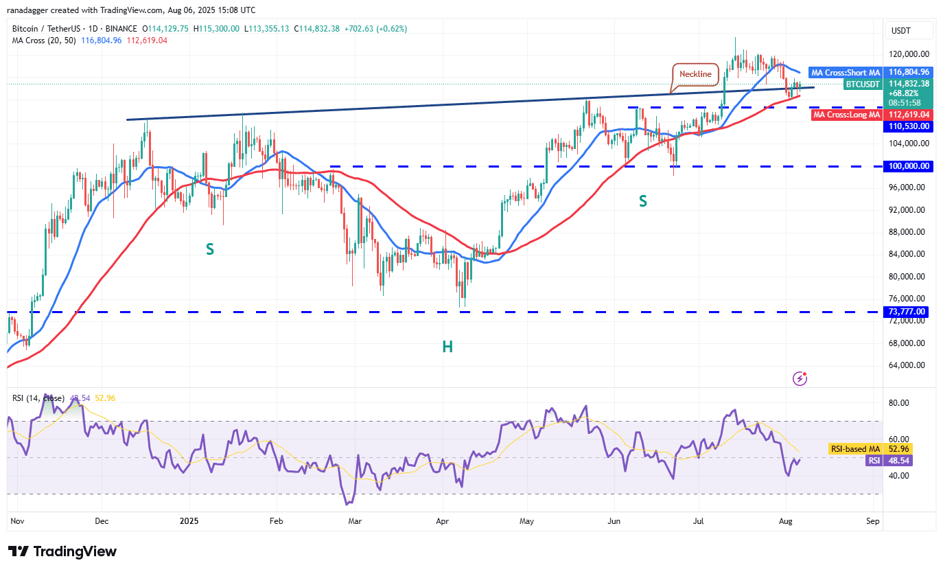روز سه شنبه ، BTC میانگین متحرک 50 روزه (SMA) (112،619 دلار) را از دست داد و این نشان می دهد که گاوها به شدت از سطح دفاع می کنند.