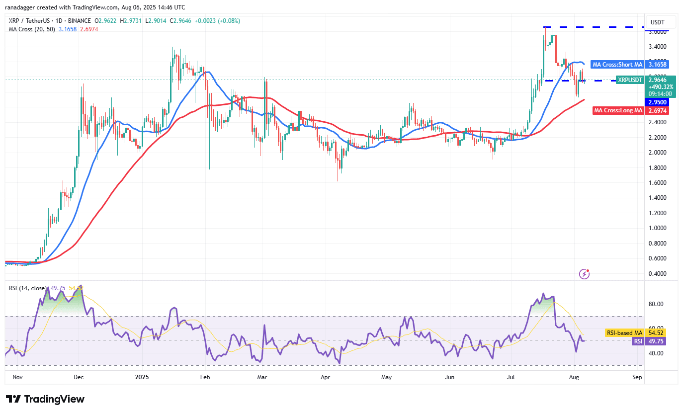 XRP (XRP) روز یکشنبه از SMA 50 روزه (2.69 دلار) ظاهر شد اما در نزدیکی SMA 20 روزه (3.16 دلار) با فروش روبرو است.
