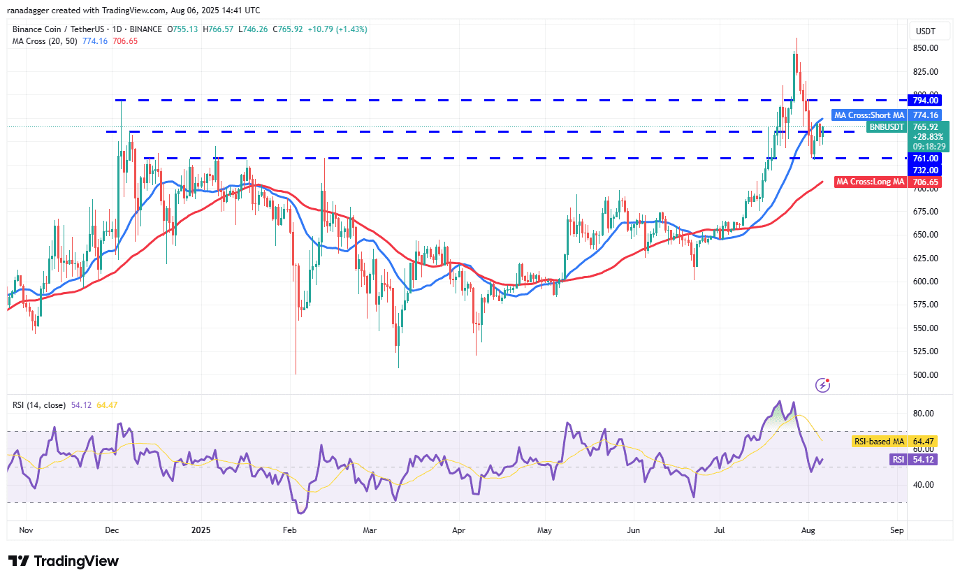 تجمع امداد BNB (BNB) در SMA 20 روزه (774 دلار) با فروش روبرو است ، اما نشانه مثبت این است که گاوها فشار را حفظ کرده اند.