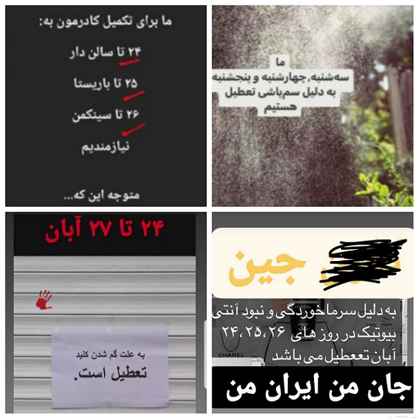منذ عدة أيام ، تم تكرار 3 أرقام بين مجموعة من مستخدمي Instagram و Twitter ؛ 24 و 25 و 26. في استمرار الدعوات المتسلسلة للتجمعات في الشوارع ، والتي كانت في كل مرة مصحوبة بمزيد من الإذلال ، هذه المرة تمت إضافة ارتباط اقتصادي إلى دعوة وجدول أعمال المنتقدين في إيران. الآن بعد أن اصطدمت سهام العدو بالصخور عمليا لإحداث الفوضى وانعدام الأمن ، قاموا بتغيير تكتيكاتهم ودخلوا مرحلة الحرب النفسية والاقتصادية. كان الأمر كذلك لمدة ثلاثة أيام ، 24 و 25 و 26 من آبان ، أصدروا أمرًا “بعدم الشراء” و “عدم البيع” للجمهور للاستماع إلى أوامرهم. أي أنهم طُلب منهم التعبير عن احتجاجهم للنظام في إيران بإغلاق أعمالهم الخاصة وعدم الشراء من متاجر مواطنيهم ، في عمل واضح من إيذاء الذات ، وربما الإطاحة به!