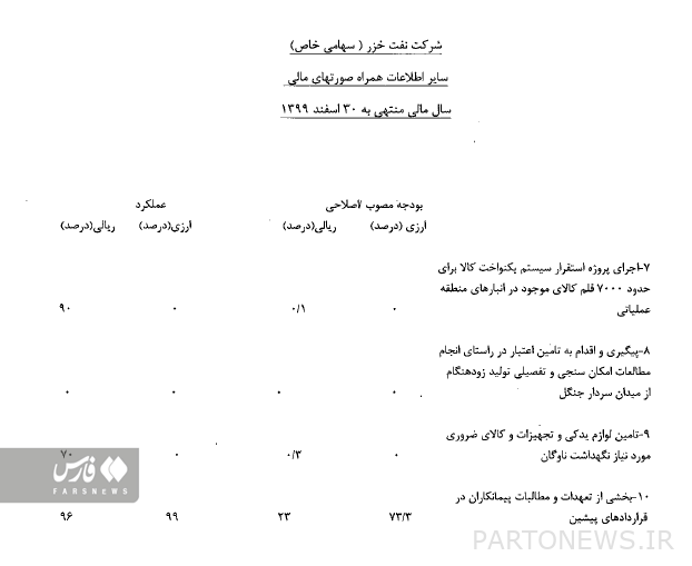 نتيجة لذلك ، لم يتم تخصيص أي موارد مالية لهذه الشركة لنقل مشروع المنصة ، ومشروع السفن 1 و 2 ، ومشروع بناء الوحدات السكنية ، ومشروع جرجان الزلزالي ، ومشروع الجيوفيزياء في البحر ، مشروع الحفر البري والبحري ، إلخ.