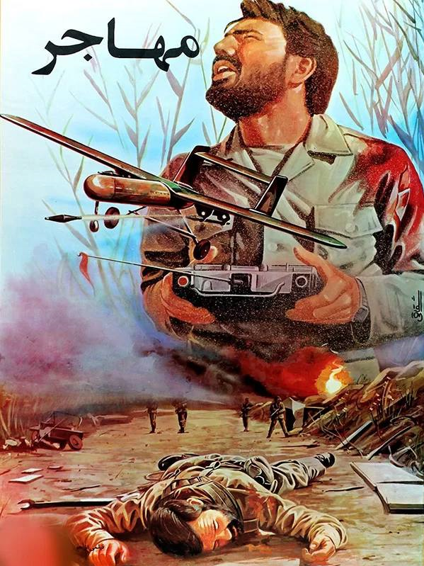 فيلم “المهاجر” إخراج إبراهيم حاتميكيا وإنتاج عبد الله باكيدة هو نتاج المجال الفني، تم إنتاجه عام 1368، وخلاصة قصته هي: طائرة المهاجر بدون طيار يتم التحكم فيها من الأرض وتستخدم في عمليات الاستطلاع خلف خطوط العدو، ونظراً لمدى محدودية جهاز التحكم، يتمركز الطيارون في محطتين متقابلتين، في مواجهة بعضهما البعض وفي خطوط العدو….