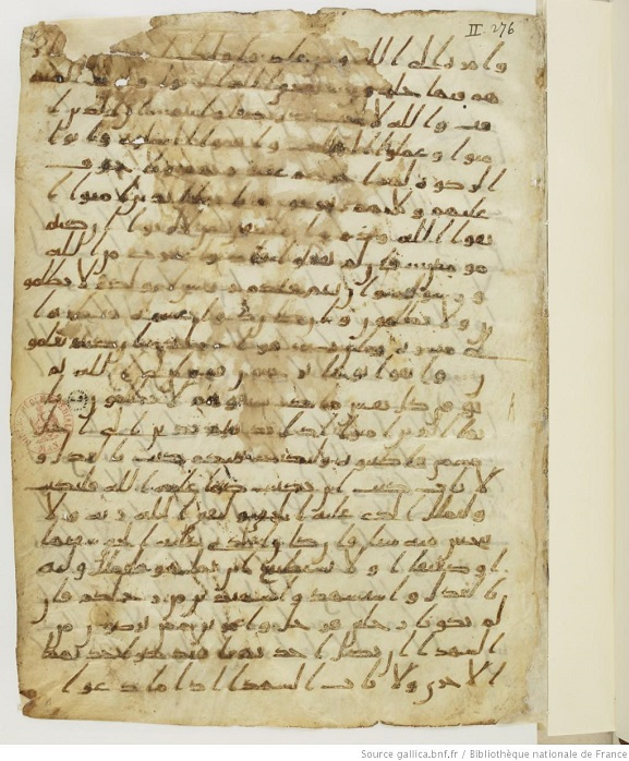 تشير الأبحاث التي أجراها ياسين دوتون إلى أن هذه النسخة ربما تكون قد كتبت في سوريا ، كما هو مكتوب في تلاوة (تلاوات / تلاوات) لابن عامر بدمشق ، سوريا. اليوم ، توجد أقسام من المخطوطة في أربع مؤسسات مختلفة: مكتبة فرنسا الوطنية ، ومكتبة روسيا الوطنية ، ومكتبة الفاتيكان ، ومجموعة خليلي في لندن.