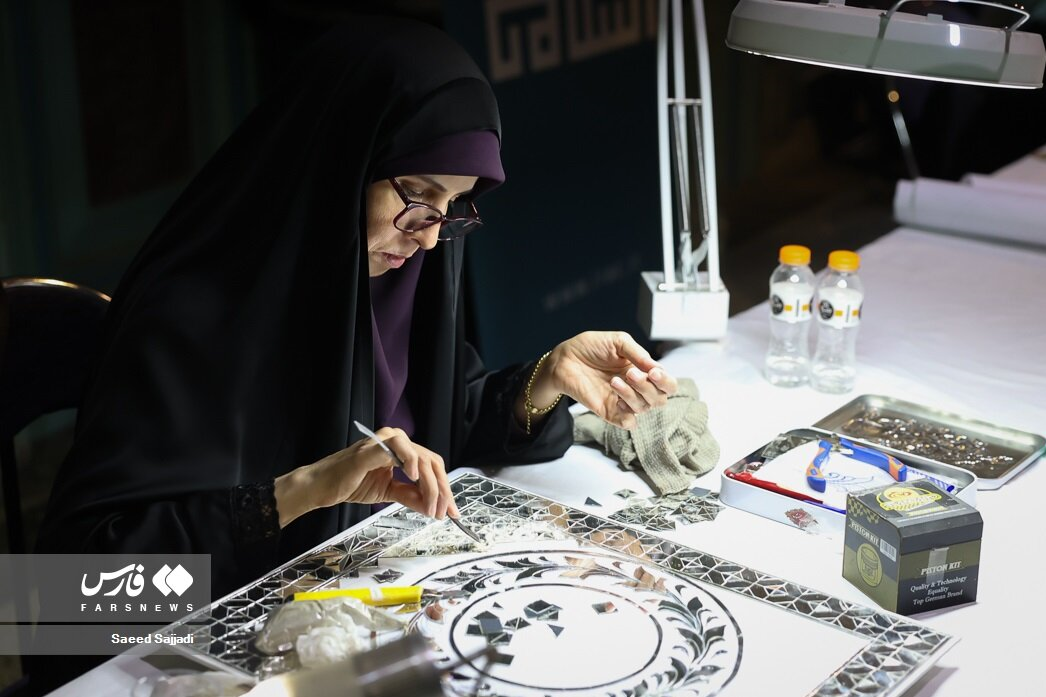 أبعد قليلاً وبجانب المكان الذي عُرضت فيه طقوس الحداد المحلية ، كانت هناك مساحة لورشة عمل الفن والهندسة المعمارية الإسلامية بحضور فنانين من هذا المجال كانوا يبدعون أعمالًا مختلفة.