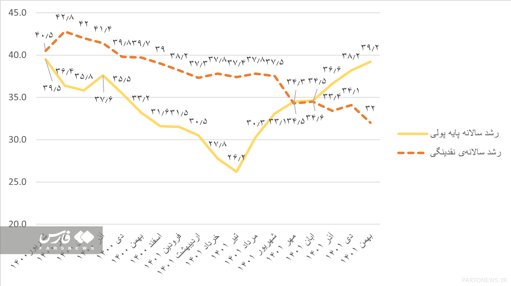 يوضح تحليل التطورات النقدية في إيران عام 1401 أن النمو الرئيسي للقاعدة النقدية في هذا العام كان بسبب جانب الديون في الميزانية العمومية للبنك المركزي وبسبب السحب على المكشوف من البنوك.