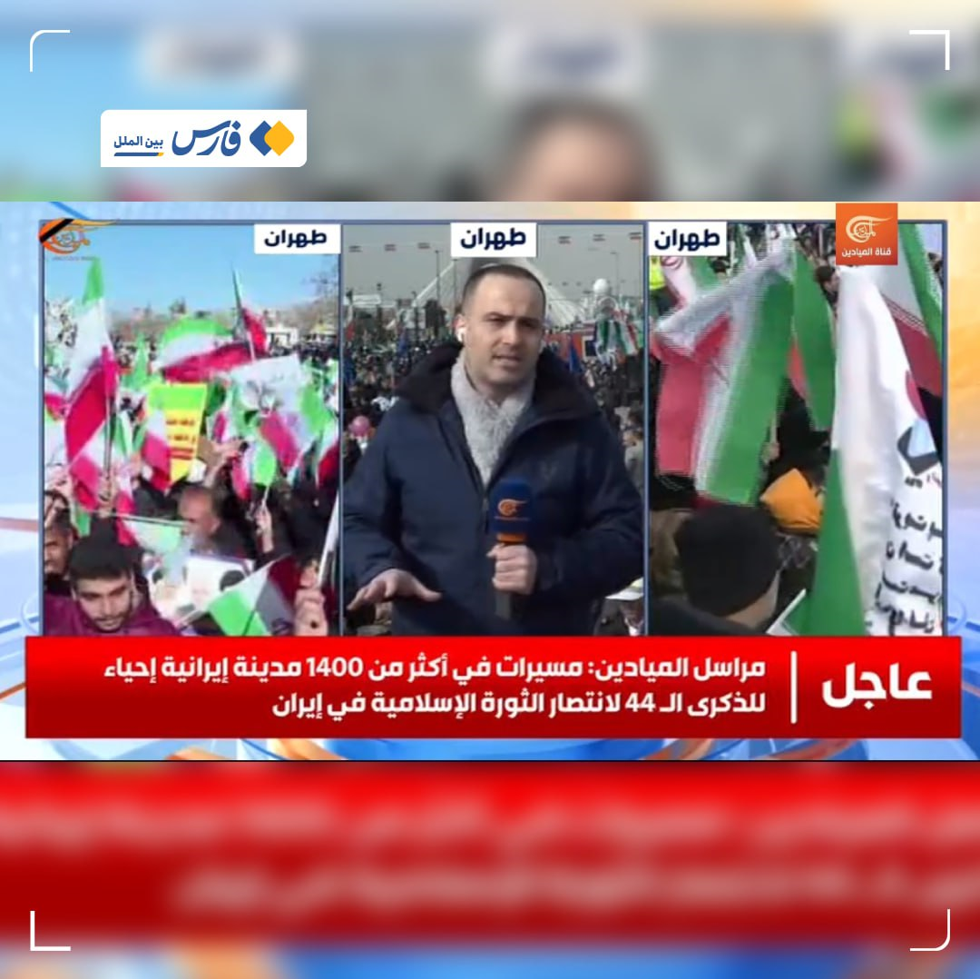 الشبكة اللبنانية الميادين كما غطى مسيرة 22 بهمن يعيشون في طهران. ونشرت صفحة الميادين على تويتر فيديو لمسيرة اليوم وكتبت: “ما سر المشاركة الجماهيرية الواسعة في الذكرى 44 للثورة الإسلامية في إيران؟”