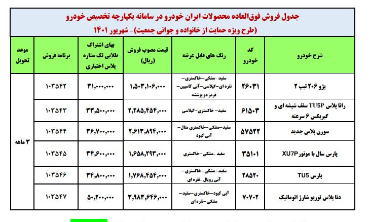 بعد فترتين من توريد السيارات في شكل نظام متكامل لتخصيص السيارات ، والذي تم في مايو ويوليو من هذا العام ، بدأت شركتان للسيارات ، إيران خودرو وسايبا ، في توريد منتجاتهما.