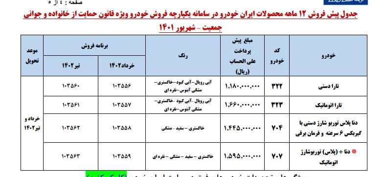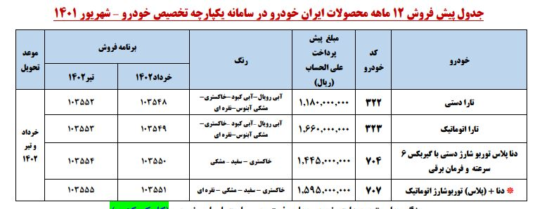 جداول توريد منتجات إيران خودرو في البيع أعلاهرائع وما قبل البيع