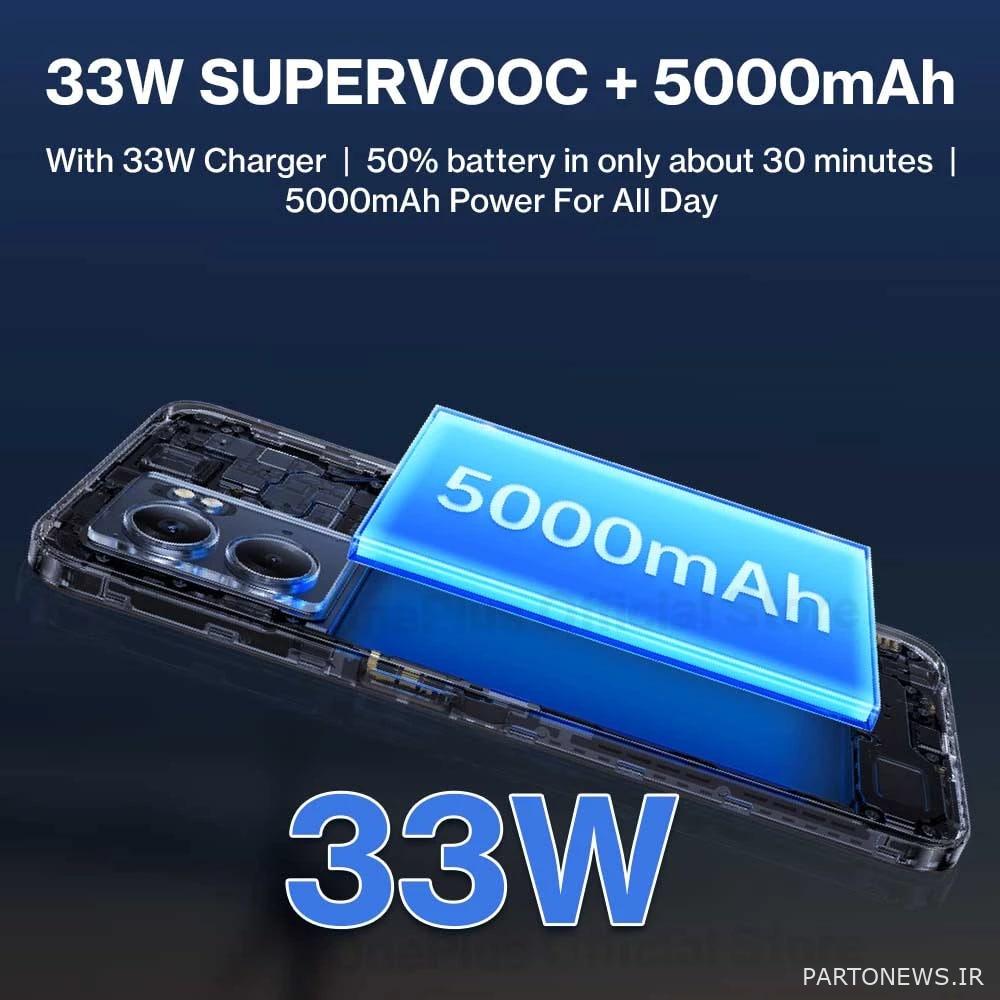 نورد 20 SE من بطارية واحدة 5000 مللي أمبير وهو يدعم الشحن السريع بقوة 33 واط SuperVOOC.