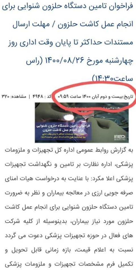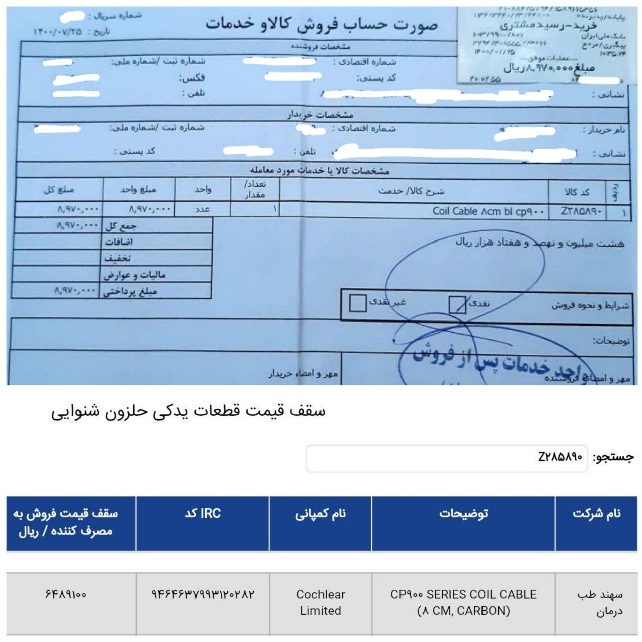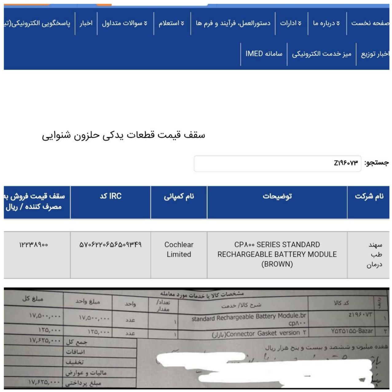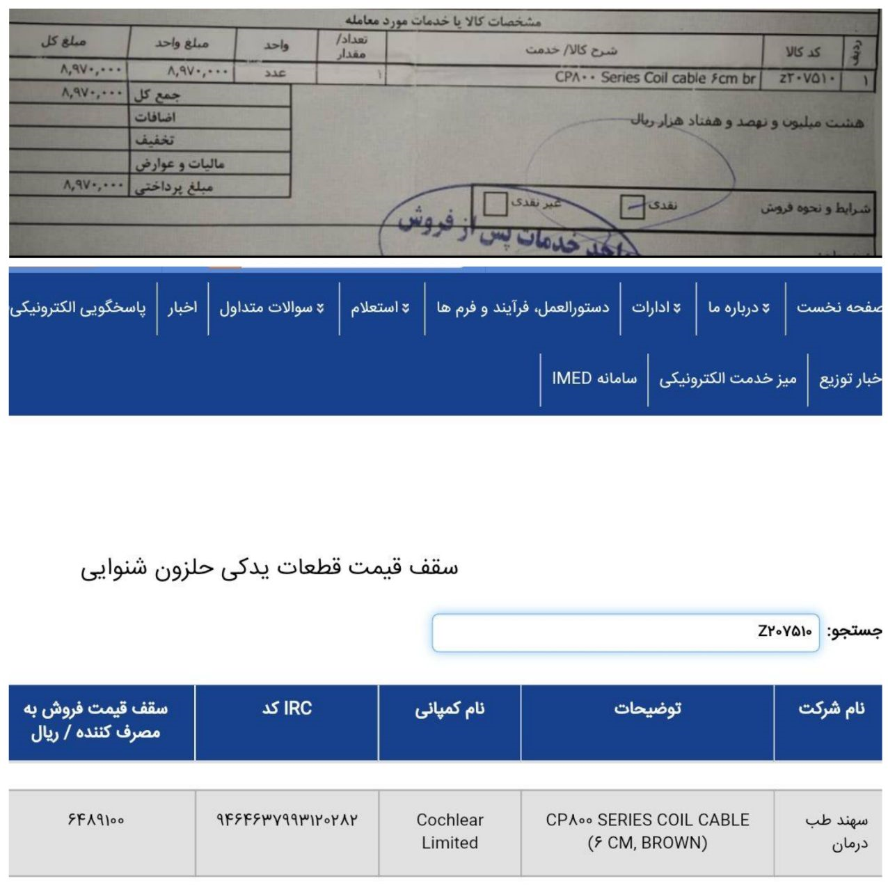 لضمان تسعير الخبراء على الموقع ، اتصلنا بهرام دراعي ، رئيس إدارة الغذاء والدواء ، الذي قال: السعر النهائي للمستهلك للمعدات الطبية ، بما في ذلك غرسات القوقعة ، متاح في قسم الاستفسار في الغذاء و يجب على موقع إدارة الأدوية وجميع شركات الخدمات تقديم منتجاتها بهذه الأسعار.