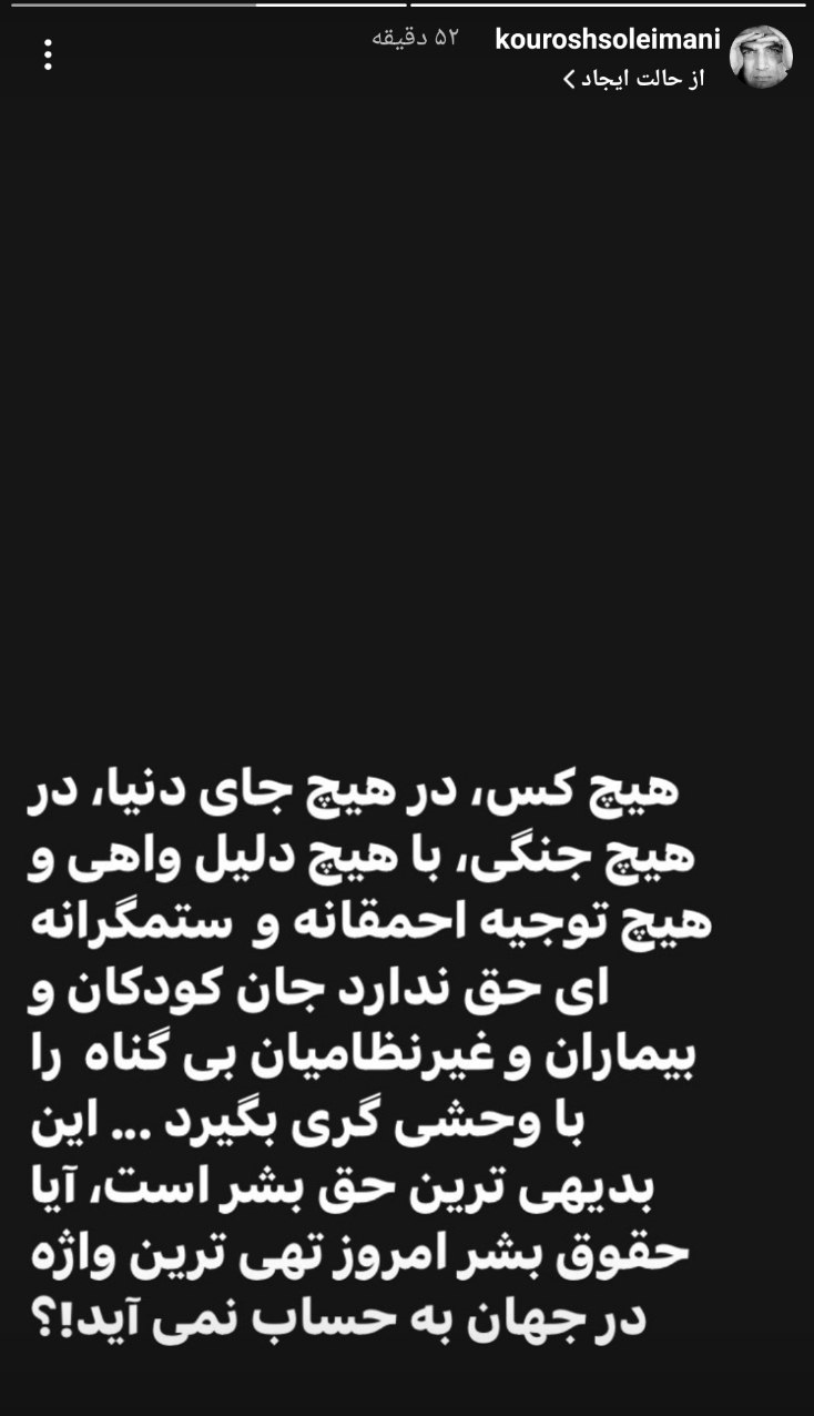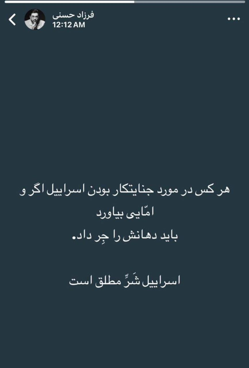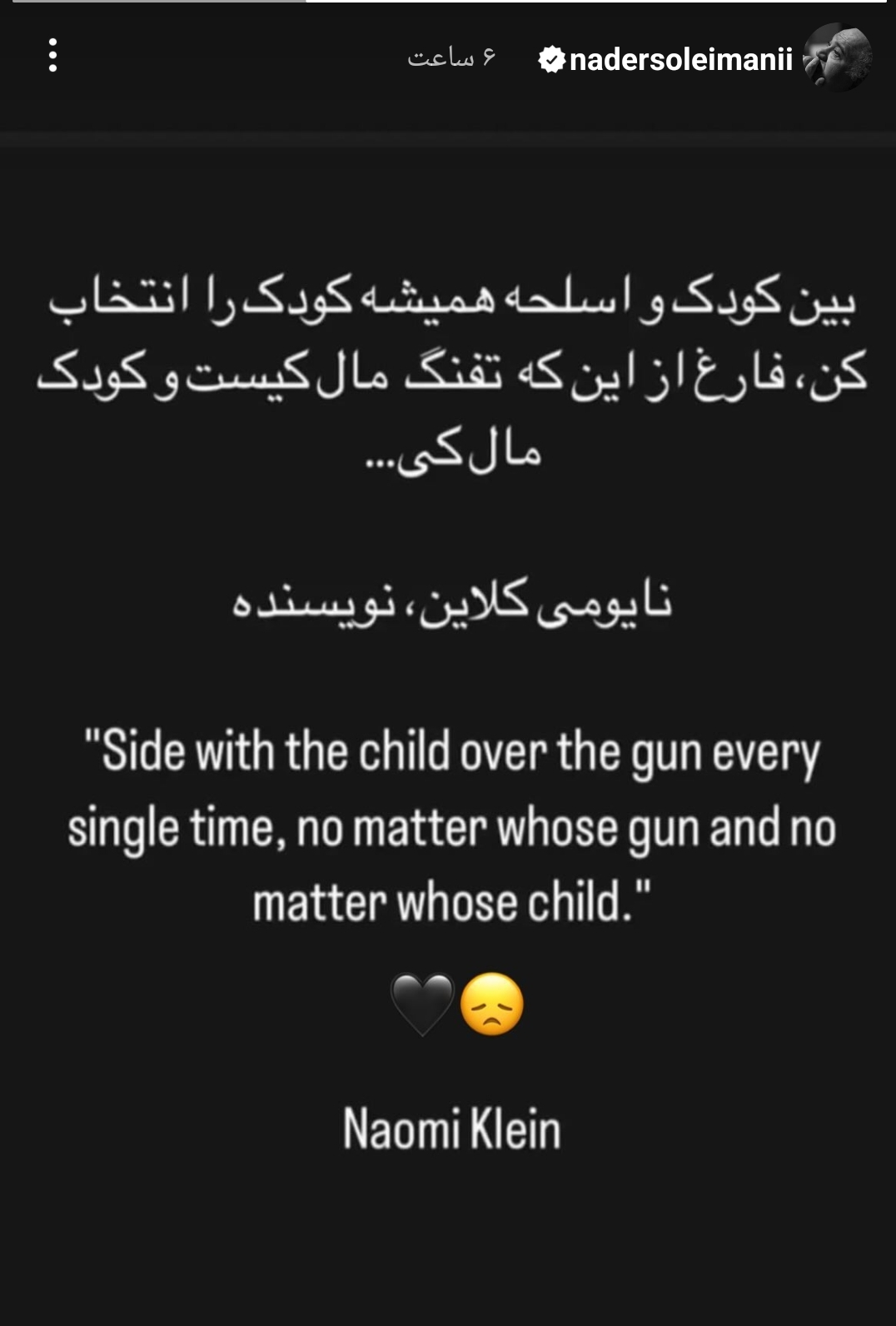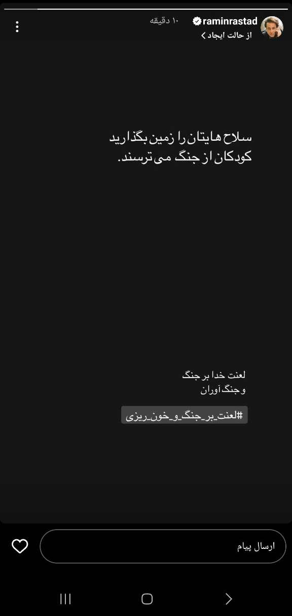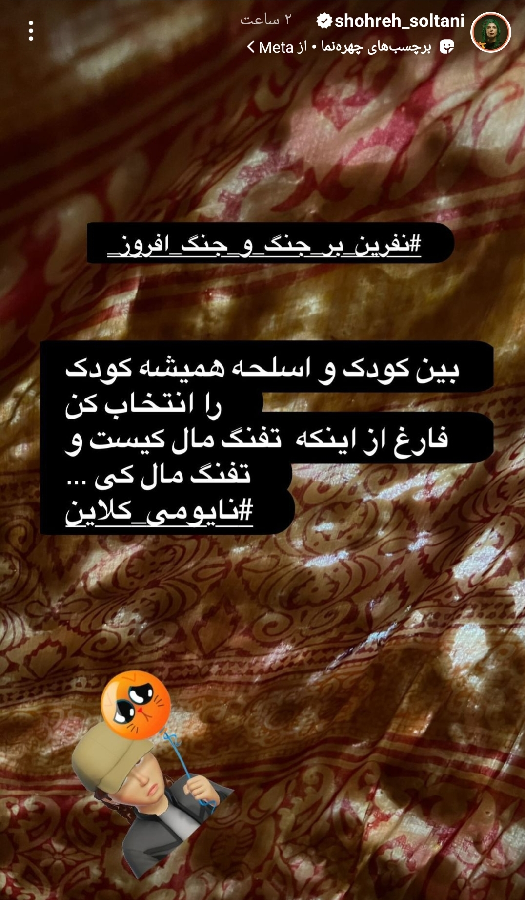وبحسب مراسل نادي صحفيي تاوانا، فإن الإبادة الجماعية التي تعرض لها العزل ليلة الثلاثاء في قصف النظام الصهيوني لمستشفى “المحمداني” واستشهاد أكثر من 1000 فلسطيني، دفعت بعض المشاهير الإيرانيين إلى الاحتجاج على مقتل الشهيد. أكثر من 3000 شخص من سكان غزة خلال الـ 11 يومًا الماضية، التزموا الصمت للرد. وبطبيعة الحال، لا توجد حتى الآن أخبار عن إدانة مباشرة للكيان الصهيوني في النصوص أو صور المشاهير.