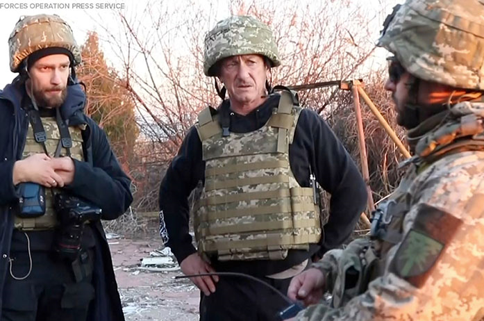 يصور شون بن فيلمًا وثائقيًا عن الغزو الروسي لأوكرانيا. وألقى الممثل الحائز على جائزة الأوسكار كلمة أمام مؤتمر صحفي في العاصمة الأوكرانية كييف ، الخميس ، عقب كلمة لمسؤولين حكوميين حول الأزمة.