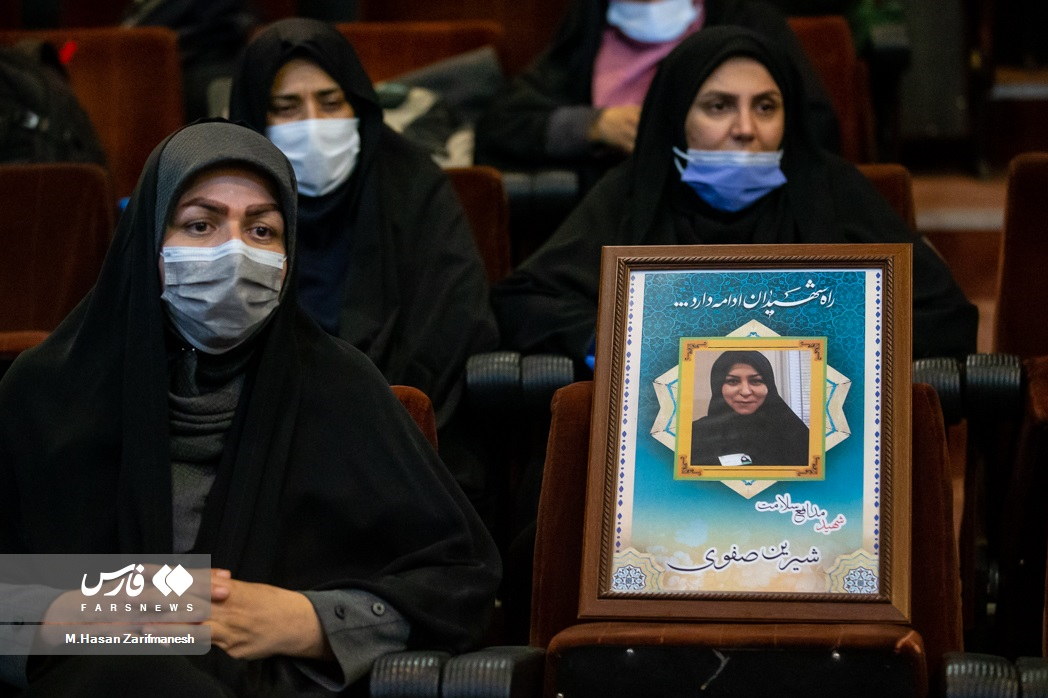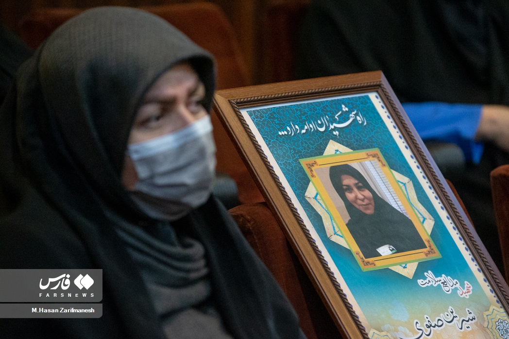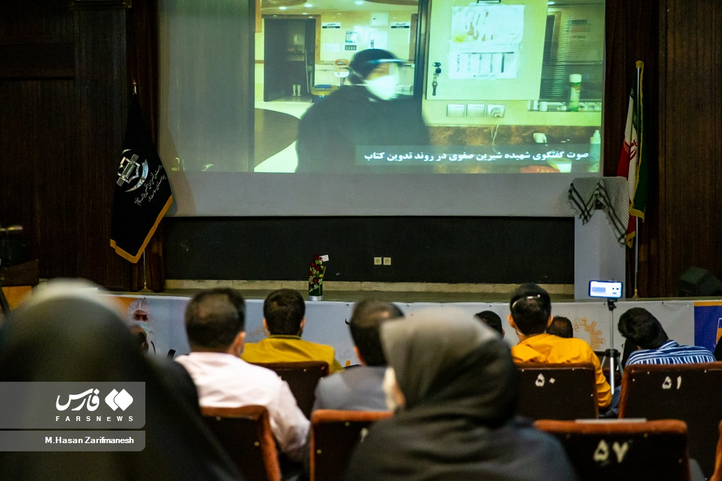 أبحث في قائمة الشهداء الذين دافعوا عن صحة مستشفى باقية الله. الشهيد تقي زارع ، الشهيد أحمد دستاني ، رضا غازنفربور ، الشهيد غودرات تغيزاده ، والشهيدة الأخيرة “شيرين صفويدي” أدرت رأسي إلى الوراء. سيدة ترتدي ثوب التمريض تجلس بجانب صورة للشهيدة “شيرين صفويدي”. في الوقت نفسه ، نقشت صورة شيرين صفوي على شاشة قاعة المؤتمرات ، ومرة أخرى أسمع صوت نفس المرأة تهمس في نفسها.