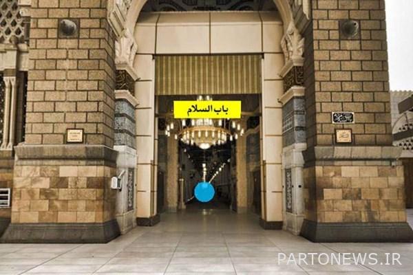 من هذا الباب ، تصل إلى الحجرة المقدسة ، وهي منطقة معينة من الزاوية الشرقية للمسجد ، داخلها مرقد الرسول الكريم صلى الله عليه وسلم ، ومكان جبرائيل ومذبح حضرة فاطمة (ع). ) وتبلغ مساحتها حوالي 240 مترًا مربعًا.