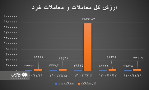 ارتفعت القيمة الإجمالية لتداولات التجزئة هذا الأسبوع بنسبة 104٪ إلى 4108 مليار تومان ، مما يدل على أن المساهمين الحقيقيين مع دخول الأموال والتداول في البورصة إلى حد ما إلى اتجاهها التصاعدي في الأسابيع الأخيرة من هذا العام والأشهر. بداية العام المقبل مفعمة بالأمل.