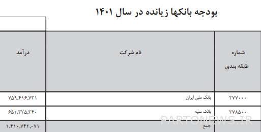 Also, the total income of the loss-making banks for next year is 141 thousand and 74 billion Tomans, of which the income of Bank Melli will be 75 thousand and 941 billion Tomans and the income of Bank Sepah will be 65 thousand and 132 billion Tomans.