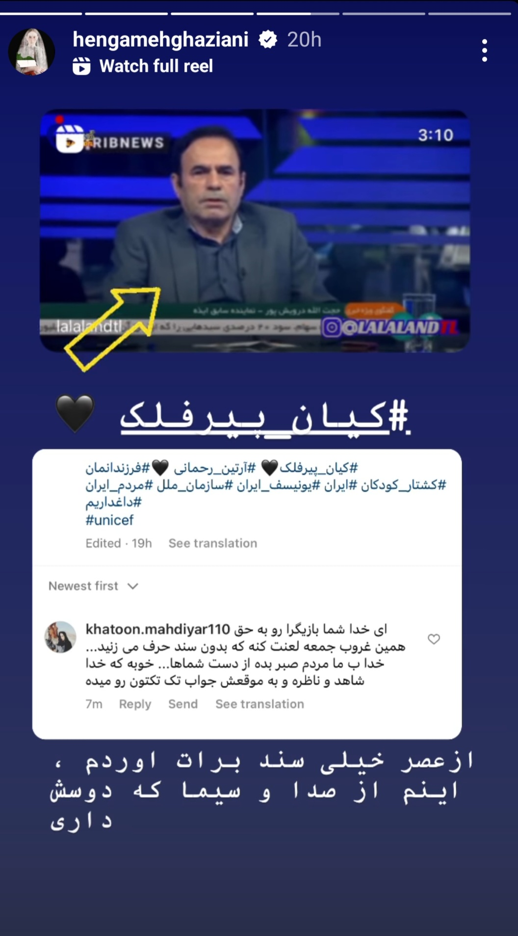 Hengameh Ghaziani was one of the actors who, in the initial moments of the news of Kian Pirflek’s death, published an article focusing on the children killed in the riots without having a valid document. Although there are official accounts of each of those killed, with many witnesses, the killing project continues to produce hatred, and it is clearly based on the arsenal of celebrity lies and is multiplied.