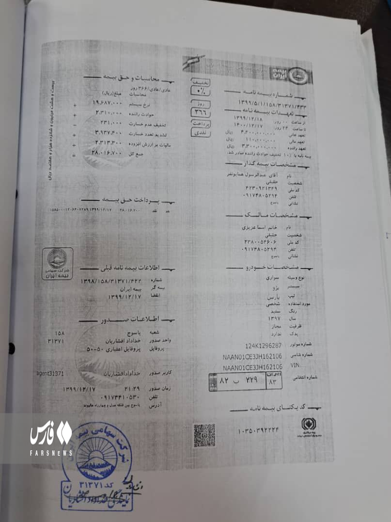 He clarified: In the same year 1998, when these correspondences were being carried out, Afsharian wrote for car insurance and claimed that this car was for the football team. The letter, which has the seal of the board of directors, and which paid all the depreciation related to this car from the account of the football board. That is, on the one hand, he told the judiciary and the executive branch that the car is for himself and gets votes, but on the other hand, he takes the car’s accounts and books from the football team. One does not know whether to believe the cock’s tail or the oath of Hazrat Abbas. This issue was one of the reasons that caused the competent authorities to summon Afsharian at the end of last year. When Afsharian saw that the foot of the lamp was dark and turned his hand, he confessed that this car belonged to the football team, and if he did so, it was only because he did not want to fall into the hands of creditors and leave the team.