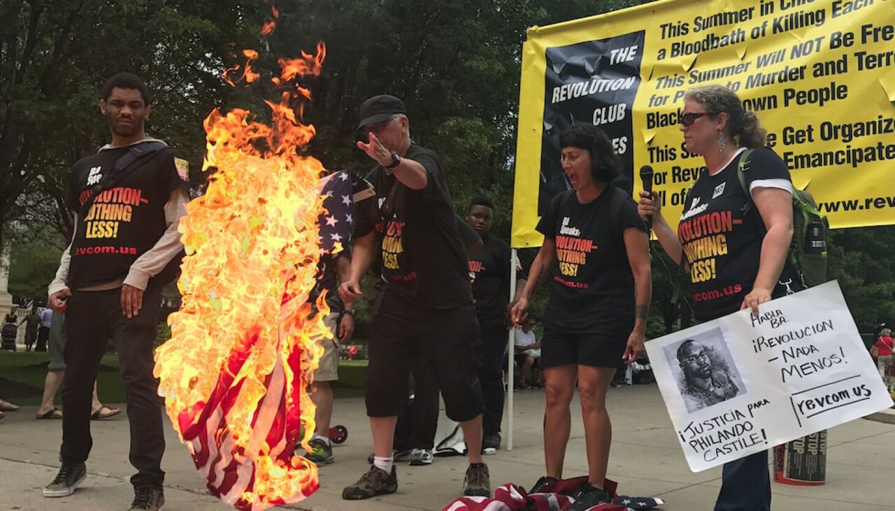 Tehran- IRNA – Yesterday, at the same time as the anniversary of the American independence, a group of members of the “Revolutionary Communist” party of this country gathered in front of the Independence Hall of the city of Philadelphia and after tearing the national flag, they set it on fire.
