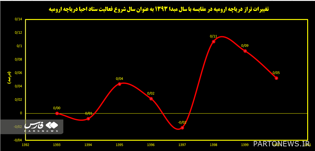 Based on this, if a cross-sectional look at the beginning of the headquarters activity in 2013 and also the conditions in end of If we put the twelfth government in 1400, we will find that the level of this lake has increased by 0.05 percent during this period and has increased by about 76 centimeters.