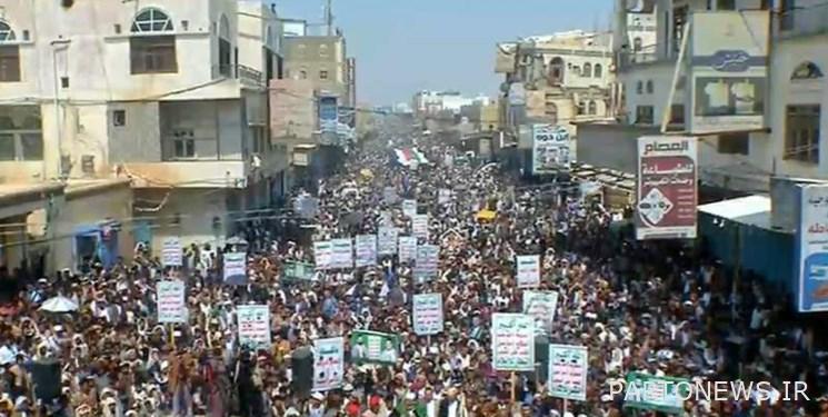 According to the news siteAl-Masira“, the people of Yemen in the marching routes leading to the streets of the airport, in addition to the mourning of Hosseini (PBUH), honor the victory of the Palestinian people and talk about the similarity of these two human and Islamic events.