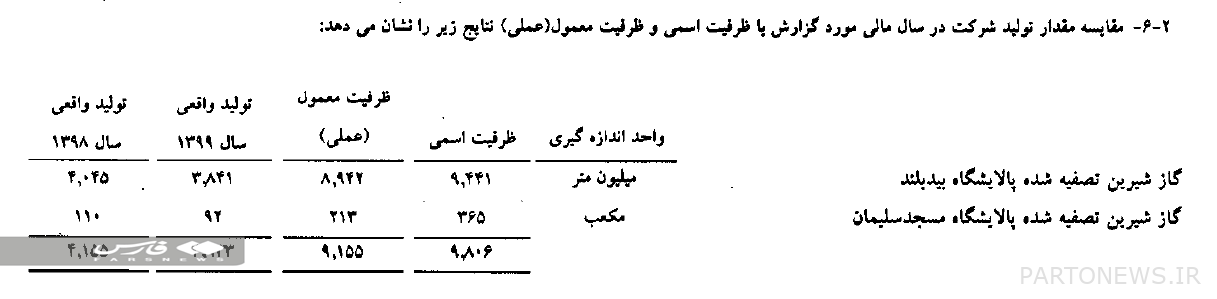 Of the 3933 million cubic meters of refined gas sold to Iran Gas Transmission Company, 3841 million cubic meters amounted to 115.2 billion Tomans related to the sale of Bidboland Gas Refining Company refined gas and 92 million cubic meters amounted to 2.8 billion Tomans It has been to Masjed Soleyman gas refinery.