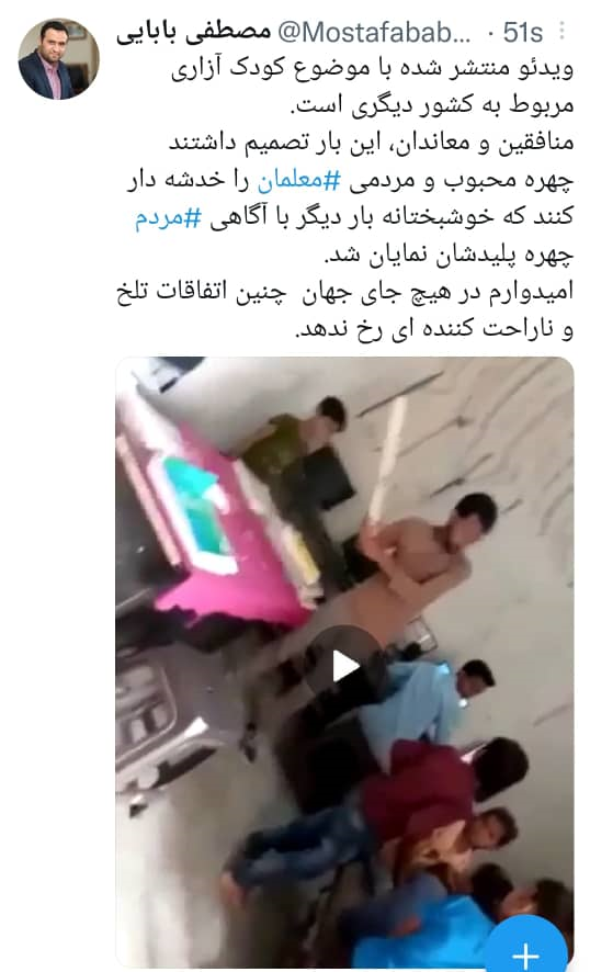 Mustafa Babaei, head of the Information and Public Relations Center of the Ministry of Education, wrote on his personal page on Twitter: “The video published on the subject of child abuse is from another country.”