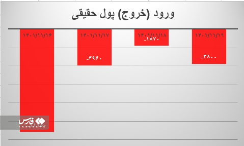 In the last week, we saw the continuation of the withdrawal of real money from the market, so that real capital was withdrawn from the market on all trading days of this week. On Sunday, the net value of real ownership change was 115 billion tomans and on Monday 396 billion tomans of real money was withdrawn. On Tuesday, 187 billion Tomans were withdrawn, and on Wednesday, real capital was withdrawn for the fourteenth day in a row. The value of real currency output on Wednesday was 380 billion tomans.