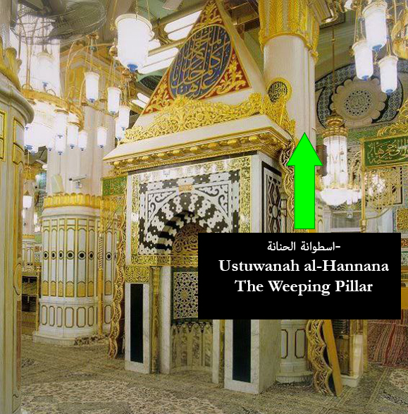 The first time the Prophet (pbuh) ascended from that pulpit, the pillar on which the nations of the Prophet (pbuh) had relied lamented, and this lamentation continued so long that the Prophet (pbuh) was forced to embrace the pillar and caress it. They did until it went off.