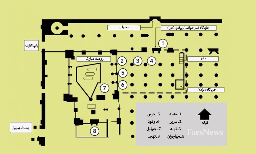 Map of the historical columns of the Prophet’s Mosque (PBUH)