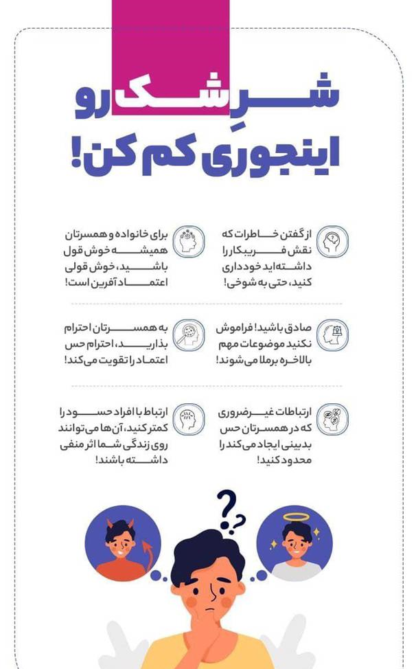 Finally, the fact that many people may have suffered from distrust of their past and family life, so they transmit this insecurity to their life together, is where the role of counselor and psychotherapist is highlighted and couples need to be treated and repaired. Take action on their spouse’s wounds. Communication and conversation skills need to be strengthened so that these problems are not passed on to children and do not disrupt cohabitation.