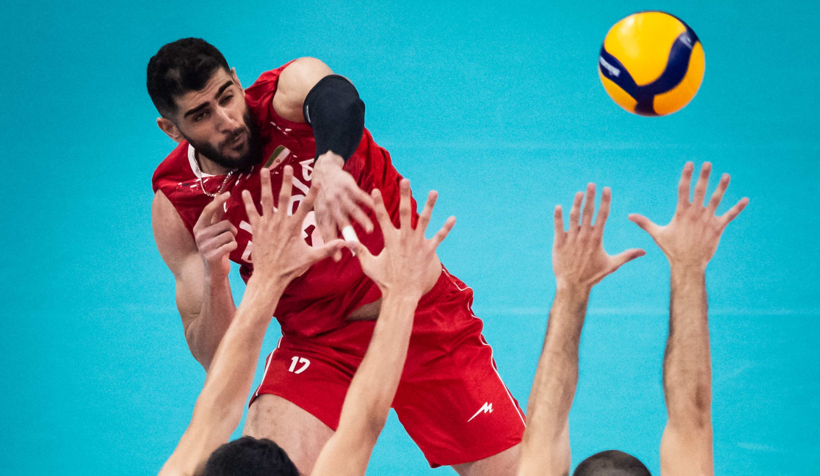 The Iranian national volleyball team started this match with the composition of Milad Ebadipour, Amirhossein Esfandiar, Mehdi Jaloh, Mohammad Taher Wadi, Amin Ismailnejad, Amirhossein Tokhte and Mohammad Reza Hazratpour.