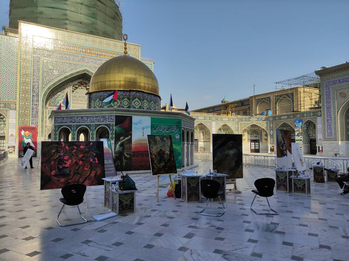 According to the Fars news agency’s visual reporter, the event “Man Al-Quds to Al-Quds” was organized by Astan Quds Razavi and by inviting 14 prominent visual arts artists, and during it, the artists, for two days, in the Quds courtyard of Motahar Razavi’s holy shrine, created works of art with the concepts of supporting The people created Palestine.