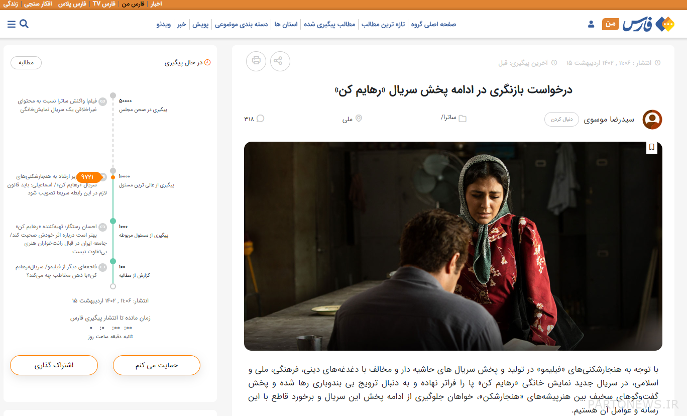 In another survey that was previously related to “Revision in the continuation of the release of the series” was published, it is said: “Regarding the violations of “Filimo” in the production and broadcast of marginal series and against religious, cultural, national and Islamic concerns, in the new series of the home show “Rahim Ken” it has gone further and It seeks to promote promiscuity and air silly dialogues between “deviant” actresses.