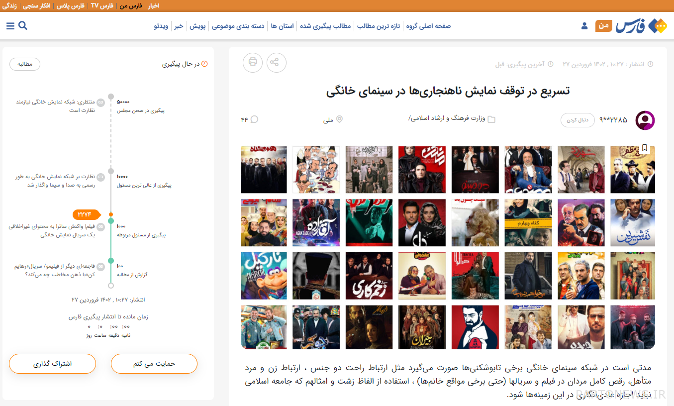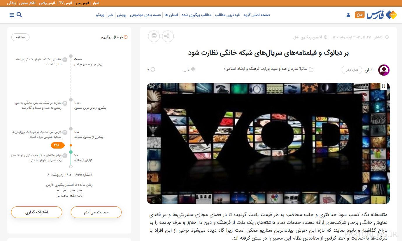 Since the beginning of this year, more than 16,000 users of the Fars Man interactive system have registered various campaigns to monitor the content of the series of the home TV network and to stop the showing of taboos and anomalies in the VODs.