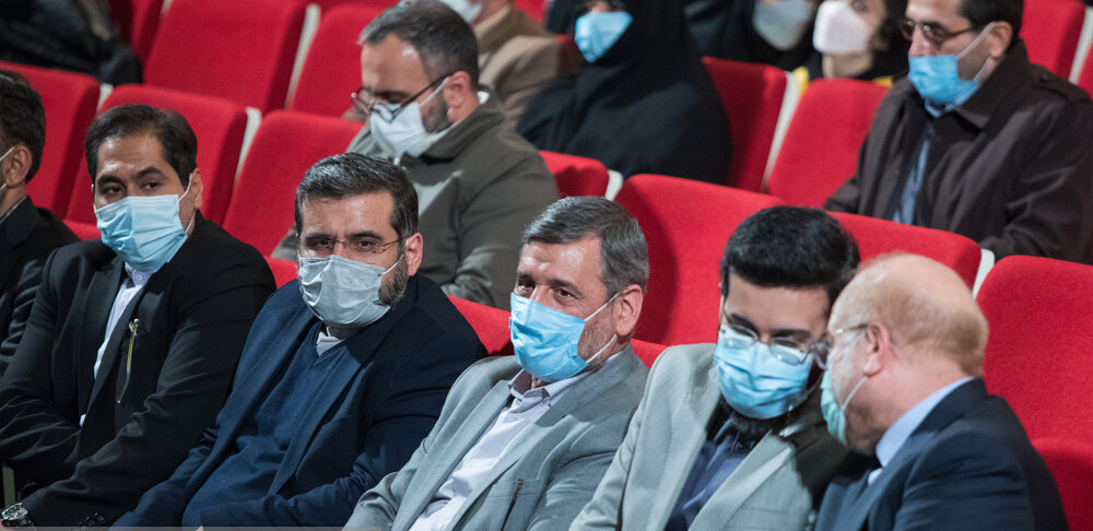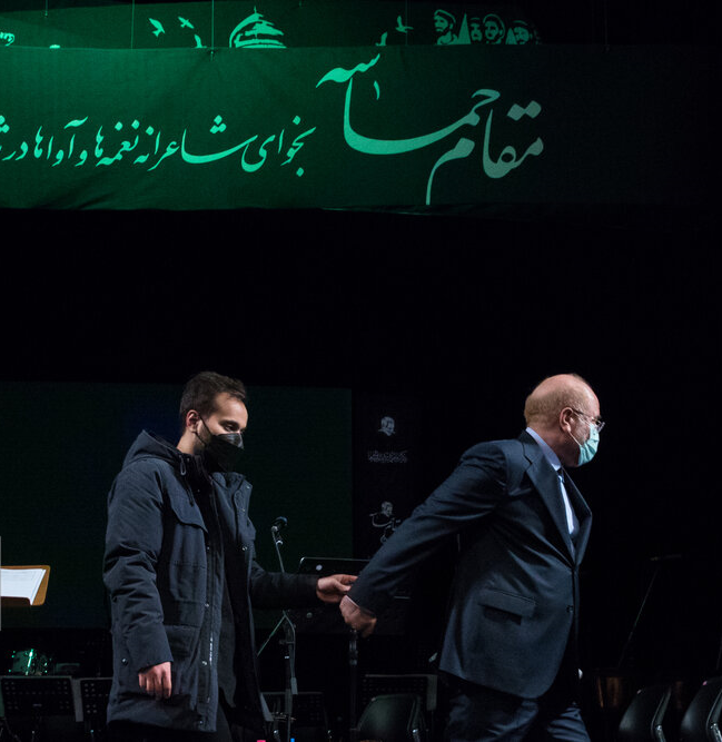 After the music, the host invited Mohammad Baqer Qalibaf, Speaker of the Islamic Consultative Assembly, to speak.