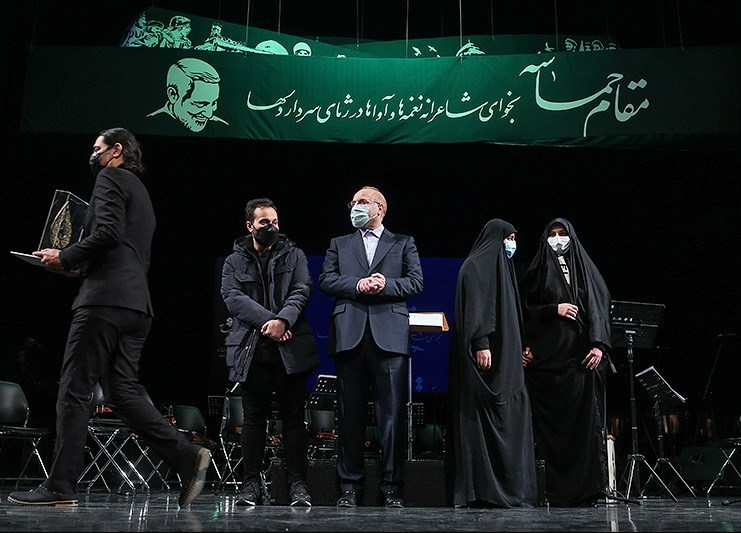 Following the program, Qalibaf came on stage with Sardar Soleimani’s three children to present a plaque of appreciation to the artists who created musical works in Haj Qasem’s mourning.
