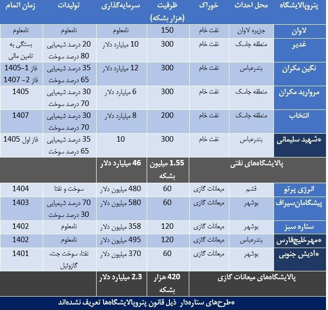 According to the investigations of the economic reporter of Fars News Agency, with Roy They are efficient The 13th government built 11 refinery plans and Petrorefinery It has been put on the agenda with oil feed and gas condensate. Table 1 shows the complete details of these 11 designs.