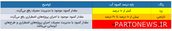 In cities with an orange status, where the mismatch between resources and expenses is between 10 and 20%, in addition to software projects, emergency plans are also on the agenda, and finally, in cities with a red status, where the mismatch is more than 20%, the amount Lack of drinking water is on the agenda with management of consumption, implementation of emergency projects and water supply plans.