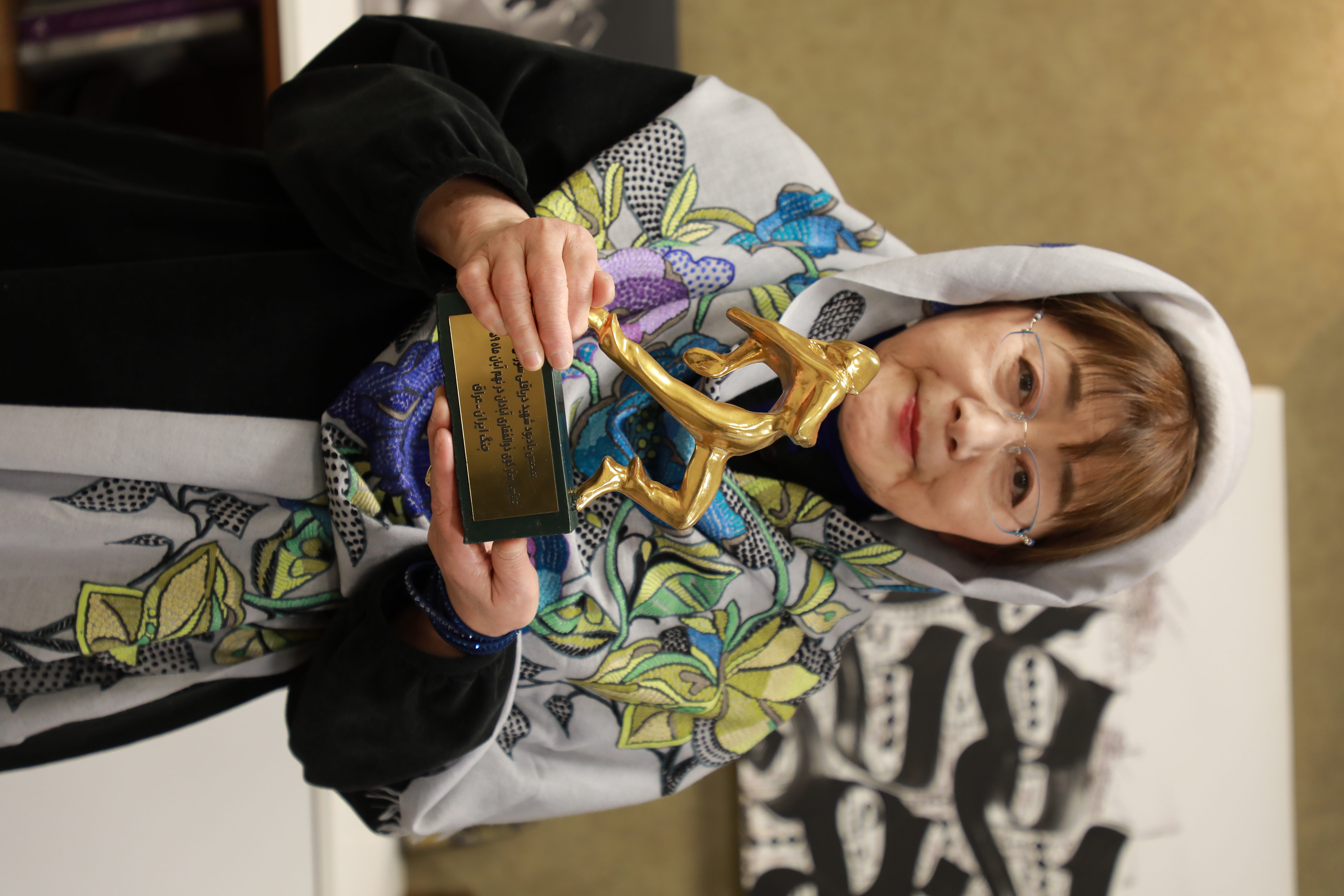 At the end of the ceremony, the ninth and last statue of Martyr Daryagholi Sorani was presented to Parviz Perstowii by all the artists, veterans and people present in the hall (in recognition of a lifetime of sincere companionship and constant partnership in the grief and suffering of veterans and the people of Iran).