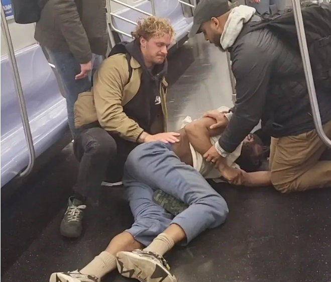 According to the report of Fars International News Agency, in the horrifying images published from the New York subway, a white man strangles him in front of others after a fight with another passenger who is black.