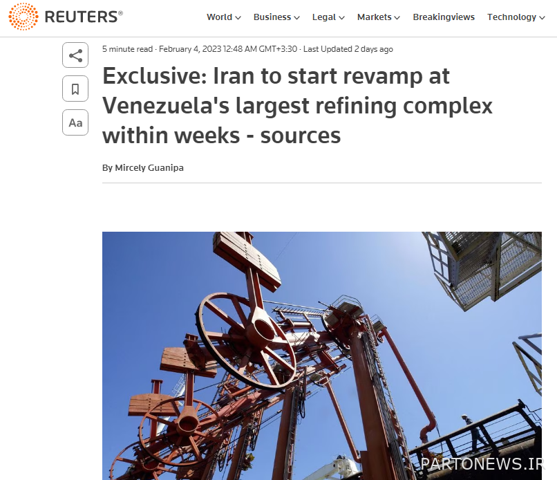 At the beginning of this week, Reuters news agency in an exclusive news entitled “Iran to start revamp at Venezuela’s largest refining complex within weeks” (picture 2) announced the signing of the contract to restore the capacity of the Paraguana refinery between Iran and Venezuela and stated: State companies from Iran and In the coming weeks, Venezuela will begin a 100-day renovation of the South American country’s largest refinery complex to restore its crude distillation capacity.