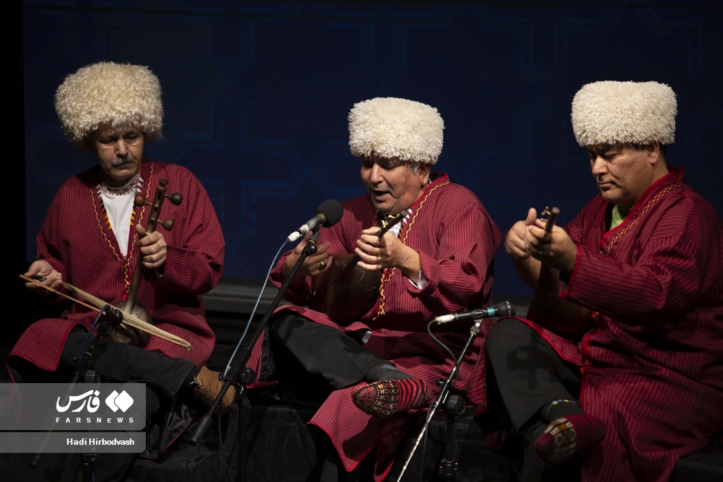 First, the live band of Yad Mansour Sabouhi, led by Ebrahim Jorjani, took the stage and the Turkmen maqami music, pieces «Concentration“,” Tomaghli “,” Tun Darya “,”یلقی Yar “,” Tsunam گلدیمیPerformed with fiddle and dotar instruments for the audience.